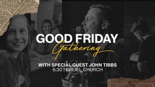 Our Good Friday Gathering takes place on Friday, March 29th at 6:30PM. This will be a time of reflection and celebration through worship and prayer stations. We will be joined again by John Tibbs and others.